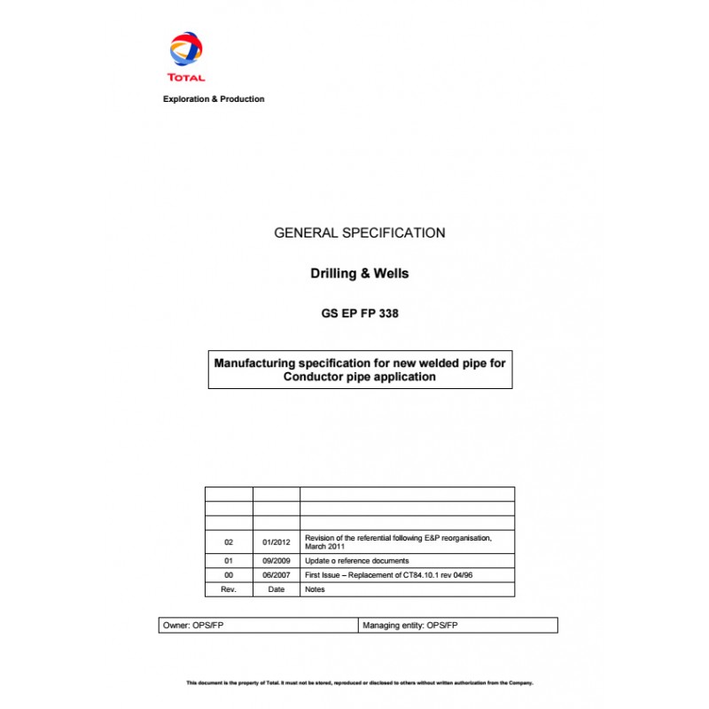 | Title : | MANUFACTURING SPECIFICATION FOR NEW WELDED PIPE FOR CONDUCTOR PIPE APPLICATION | |