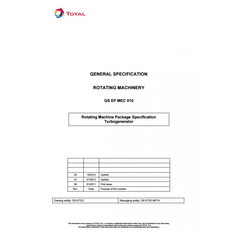 | Title : | ROTATING MACHINE PACKAGE SPECIFICATION TURBOGENERATOR | |