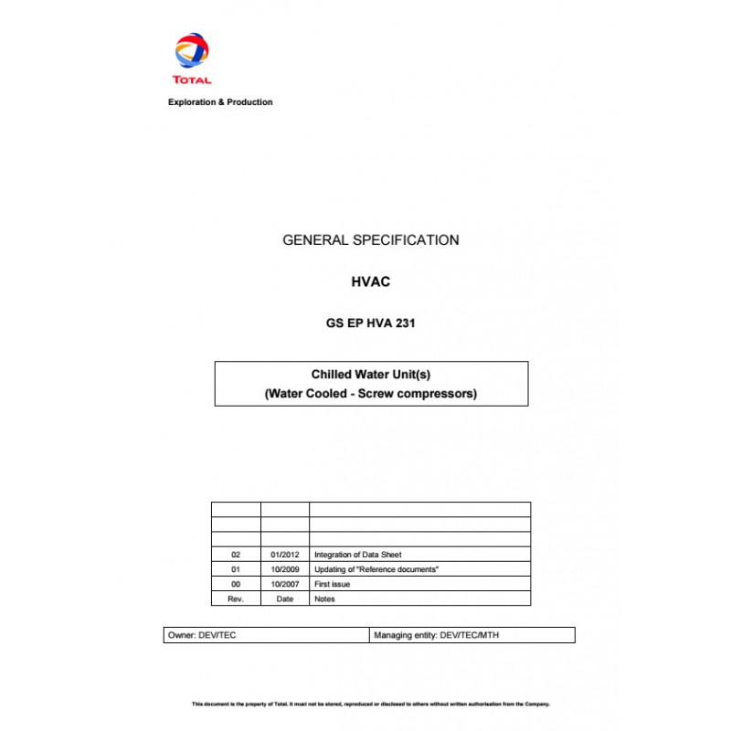 | Title : | CHILLED WATER UNIT(S) (WATER COOLED - SCREW COMPRESSORS) | |