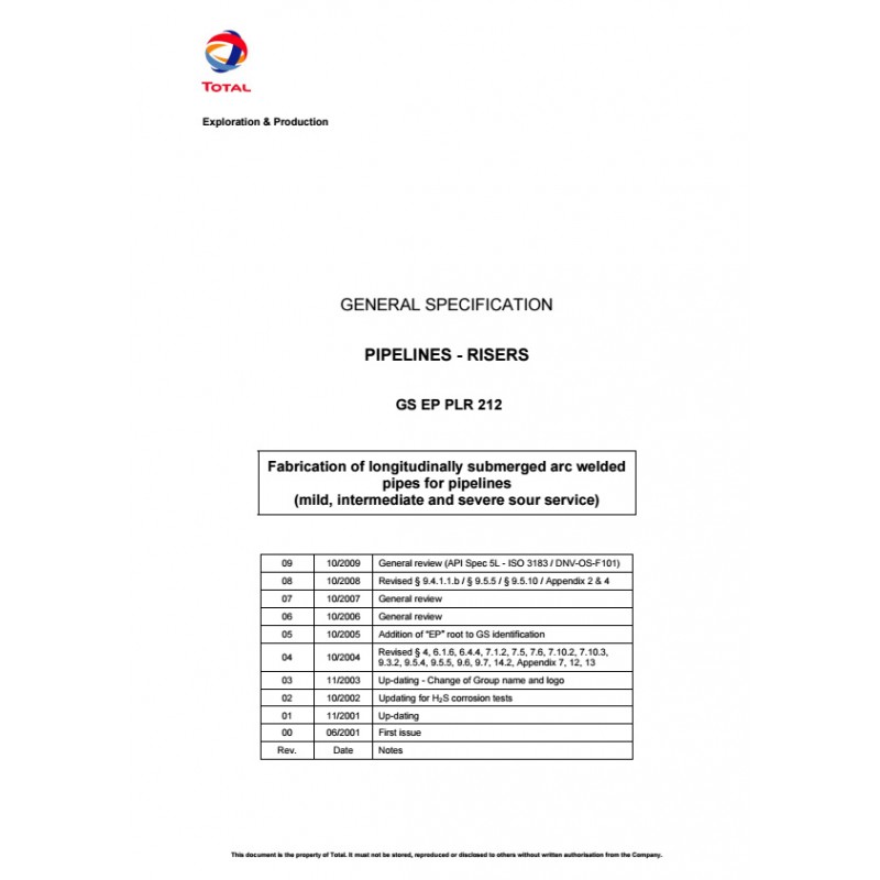 | Title : | FABRICATION OF LONGITUDINALLY SUBMERGED ARC WELDED PIPES FOR PIPELINES (MILD, INTERMEDIATE AND SEVERE SOUR SERVICE) | |