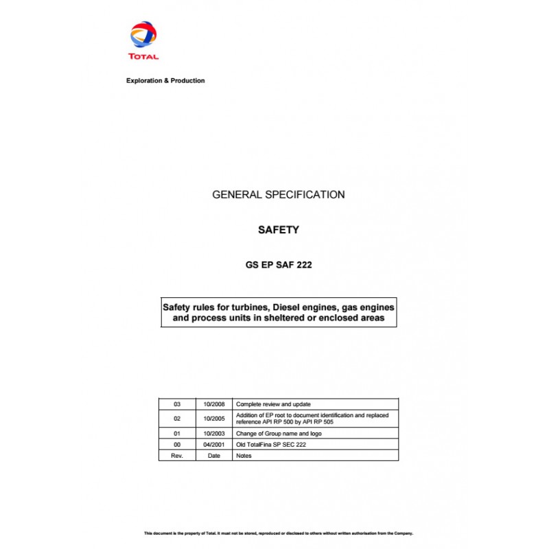 | Title : | SAFETY REQUIREMENTS FOR TURBINES, DIESEL ENGINES, GAS ENGINES AND PROCESS UNITS IN SHELTERED OR ENCLOSED AREAS | |