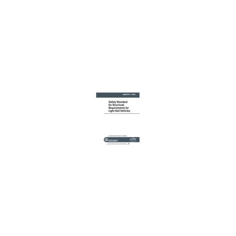 RT-1-2009 and RT-2-2008 are first editions of the ASME RT Safety Standards. They apply to carbodies for newly constructed light and heavy rail vehicles for transit passenger service.