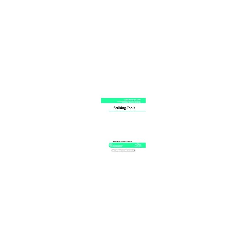 The purpose of B107.400 is to define essential performance and safety requirements specifically applicable to the various striking tools covered herein. It specifies test methods to evaluate performance related to the defined requirements and safety, and indicates limitations of safe use. This standard is a combination of: B107.41 Nail Hammers, B107.42 Hatchets and Axes, B107.53 Ball Peen Hammers, B107.54 Heavy Striking Tools, B107.56 Body Repair Tools, B107.57 Bricklayers Hammers