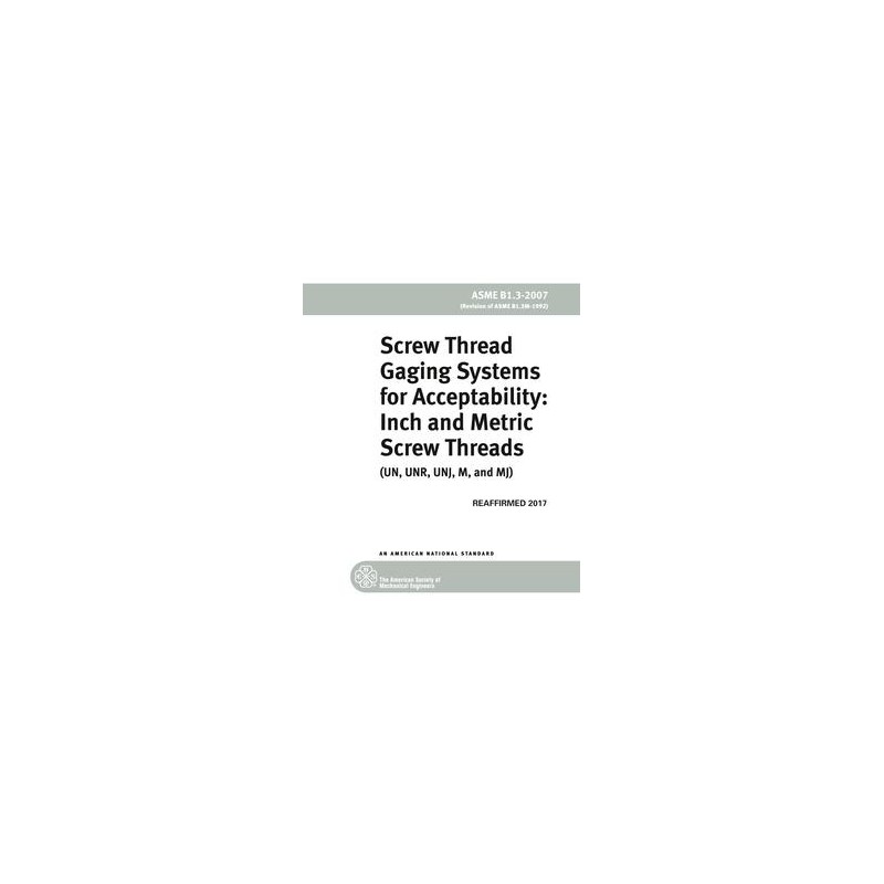 ASME B1.3-2007 (R2017) Screw Thread Gaging Systems for Acceptability: Inch and Metric Screw Threads (UN, UNR, UNJ, M, and MJ)