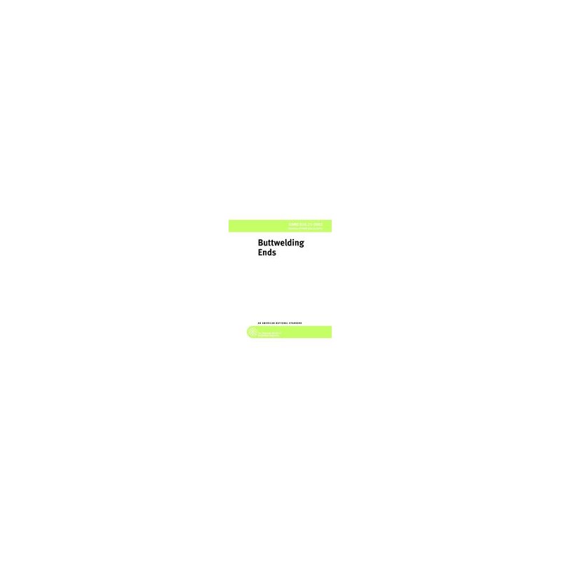 This Standard covers the preparation of buttwelding ends of piping components to be joined into a piping system by welding. It includes requirements for welding bevels, for external and internal shaping of heavy-wall components, and for preparation of internal ends (including dimensions and tolerances). Coverage includes preparation for joints with the following. (a) no backing rings; (b) split or noncontinuous backing rings; (c) solid or continuous backing rings; (d) consumable insert rings; (e) gas tungsten are welding (GTAW) of the root pass. Details of preparation for any backing ring must be specified in ordering the component.