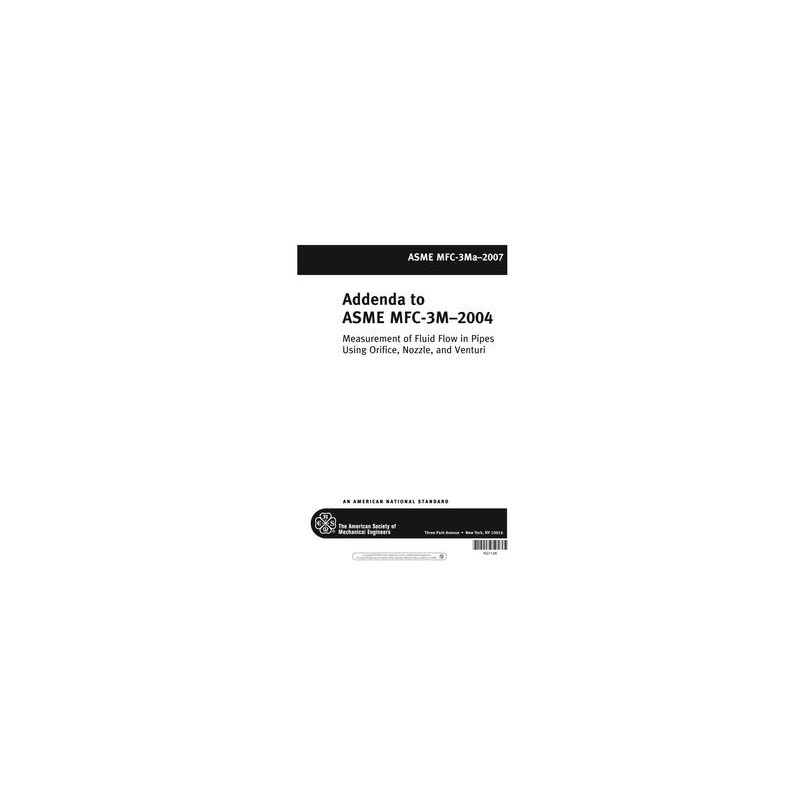 ASME MFC-3M-2004 (R2017) Measurement of Fluid Flow in Pipes Using Orifice, Nozzle, and Venturi, Includes Addenda A (2007)