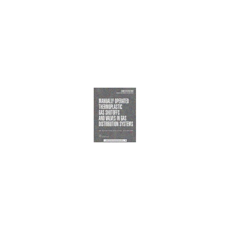 This Standard covers manually operated thermoplastic valves in nominal sizes 1.2 through 6 (as shown in Table 5). These valves are suitable for use below ground in thermoplastic distribution mains and service lines. The maximum pressure at which such distribution piping systems may be operated is in accordance with the Code of Federal Regulation (CFR) Title 49, Part 192, Transportation of Natural and Other Gas by Pipeline; Minimum Safety Standards, for temperatrure ranges of .20 deg. F to 100 deg. F (.29 deg. C to 38 deg. C). This Standard sets qualification requirements for each nominal valve size for each valve design as a necessary condition for demonstrating conformance to this Standard. This Standard sets requirements for newly manufactured valves for use in below ground piping systems for natural gas [includes synthetic natural gas (SNG)], and liquefied petroleum (LP) gases (distributed as a vapor, with or without the admixture of air) or mixtures thereof.